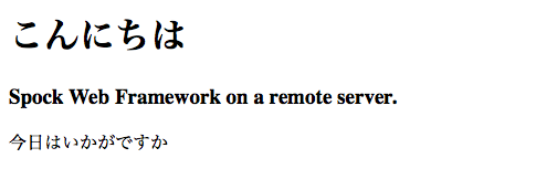 再度デプロイをする場合は、念のために「stack clean」と「stack build」で プロジェクトをビルドしなおして、「git add .」と「git commit -m "spock-web"」で git に登録しなおしてください。私の場合ですと、このサンプルは、1GBメモリーのUbuntuサーバーに対して2回目の デプロイで成功しました。