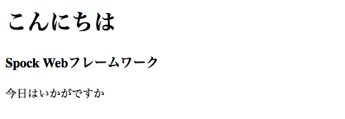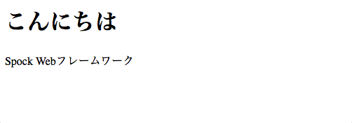 (html "<h1>こんにちは</h1><p>Spock Webフレームワーク</p>")))